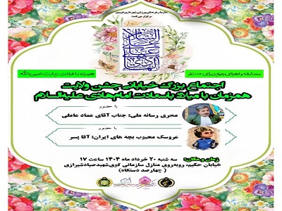 به مناسبت اعیاد باسعادت قربان ،غدیر و میلاد امام هادی(ع)اجتماع بزرگ خیابانی با اجرای برنامههای متنوع برگزار میشود.
