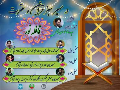 سومین سلسله محافل قرآنی در مسیر سبز قرآن و عترت تحت عنوان "قافله نور" در ناحیه منفصل شهری ناصرآباد برگزار می شود.