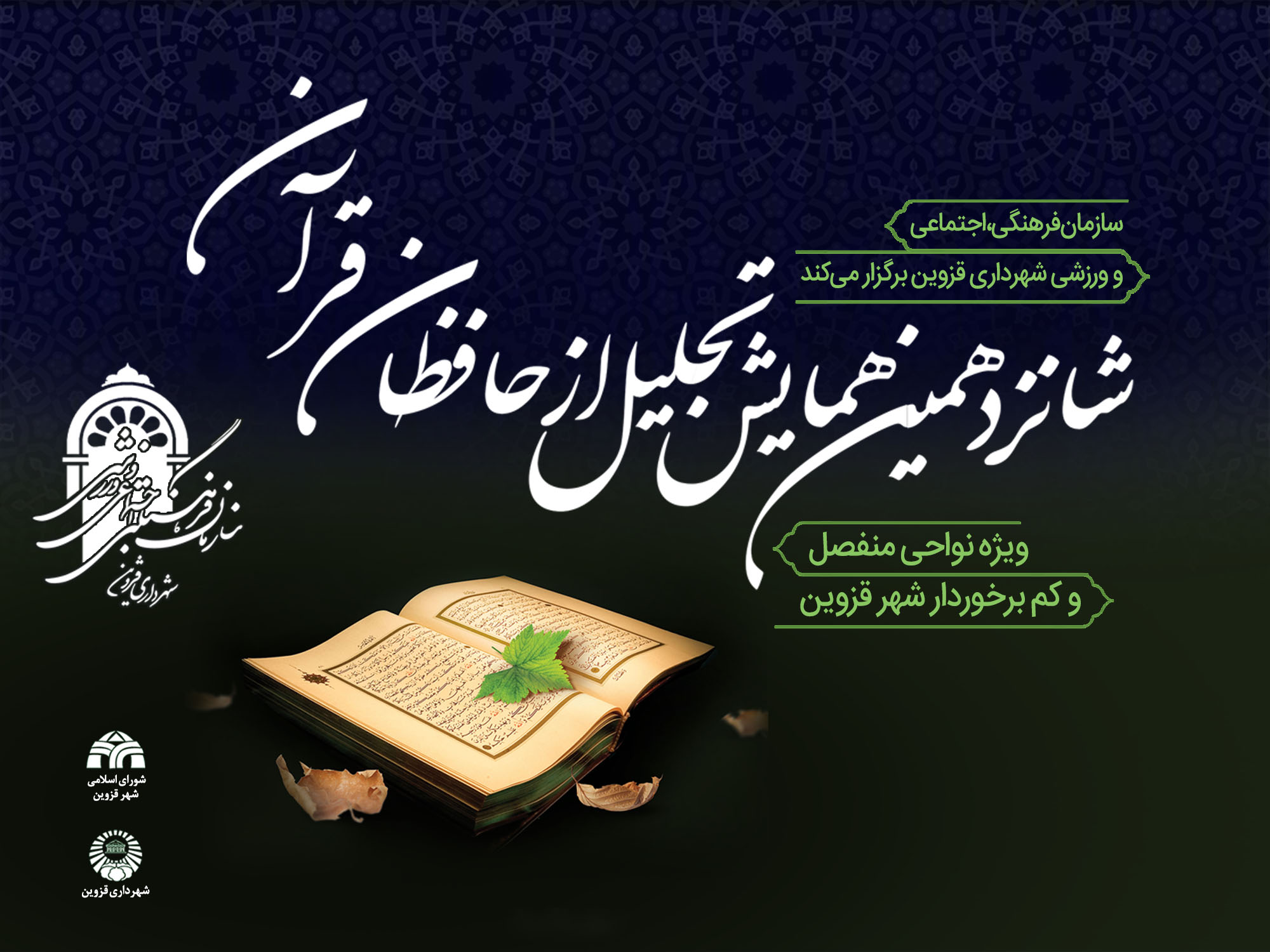 شانزدهمین همایش تجلیل از حافظان قرآن کریم شهر قزوین ویژه نواحی منفصل شهری و مناطق کم برخودار به مناسبت ماه مبارک رمضان توسط سازمان فرهنگی، اجتماعی و ورزشی شهرداری قزوین برگزار می شود.