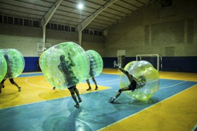 براي اولين بار در ايران؛ مراسم افتتاحيه فوتبال حبابي در قزوين برگزار شد