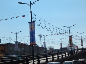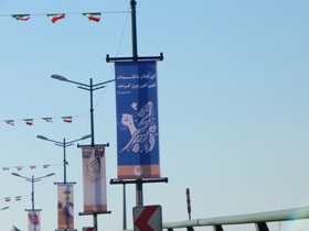 نصب 270 پرچم در محور خيابان امام خميني (ره) قزوين به مناسبت ايام الله دهه فجر