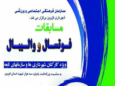 درافشانی،رئیس سازمان سازمان فرهنگی،اجتماعی و ورزشی شهرداری قزوين گفت:به مناسبت بزرگداشت یادواره سه هزار شهید استان قزوین،مسابقات والیبال ويژه کارکنان شهرداریها و سازمانهای تابعه از سوم تيرماه سال جاری آغاز می شود.