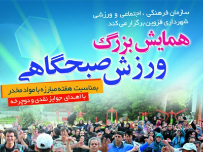 درافشانی؛رئیس سازمان فرهنگی،اجتماعی و ورزشی شهرداری قزوین گفت: به مناسبت گرامیداشت یادواره سه هزار شهید استان قزوین و هفته مبارزه با مواد مخدر؛همایش بزرگ ورزش صبحگاهی توسط مدیریت شهری قزوین در بوستان الغدیر برگزار می شود.