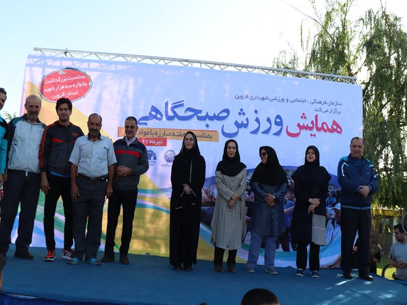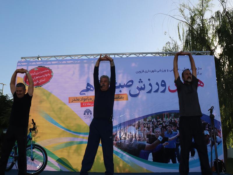 به مناسبت گرامیداشت یادواره سه هزار شهید استان قزوین و هفته مبارزه با مواد مخدر؛همایش بزرگ ورزش صبحگاهی در هوای مطبوع و دلنشین صبحگاه بهاری توسط شهرداری قزوین با حضور گسترده و پرشور شهروندان،رئیس،اعضای شورای شهر و مدیران شهری در بوستان الغدیر برگزار شد.
