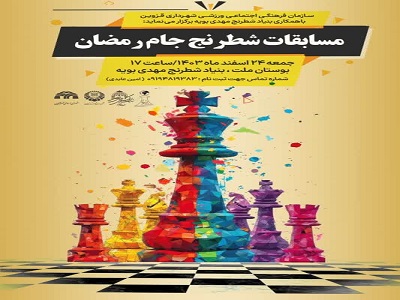 به مناسبت ماه مبارک رمضان مسابقات شطرنج "جام رمضان "توسط سازمان فرهنگی اجتماعی ورزشی شهرداری قزوین و مشارکت بنیاد شطرنج مهدی بویه برگزار می شود.