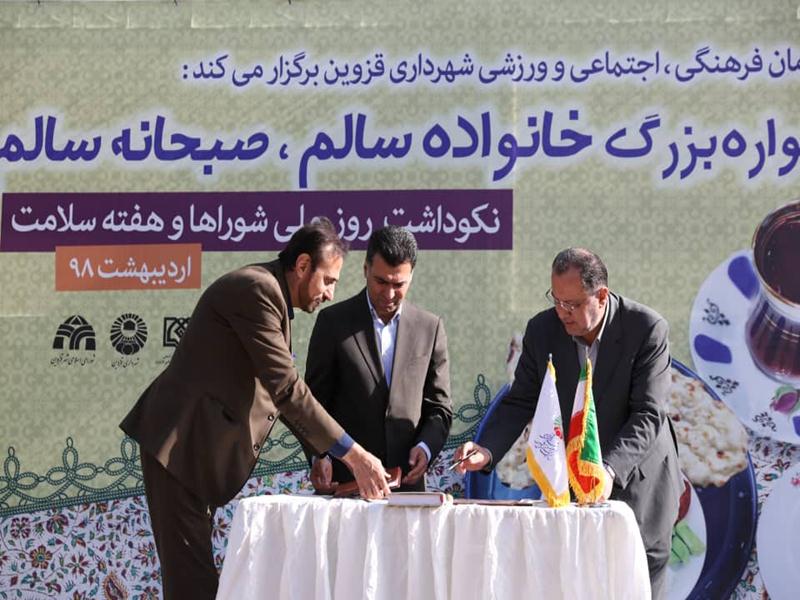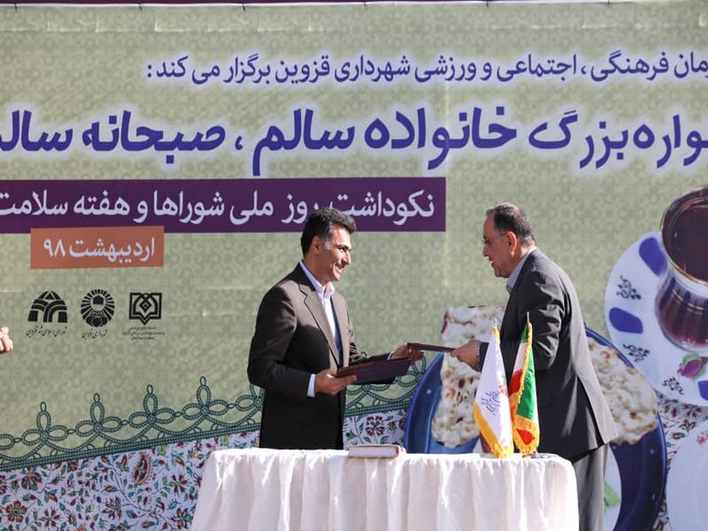 تفاهم نامه مشترک بین دانشگاه علوم پزشکی و سازمان فرهنگی ،اجتماعی و ورزشی شهرداری قزوین در دومین جشنواره صبحانه سالم خانواده سالم منعقد شد.
