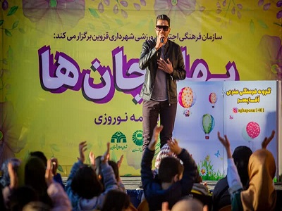 به گزارش روابط عمومی سازمان فرهنگی، اجتماعی و ورزشی شهرداری قزوین؛ویژه برنامه بهار جان ها با اجرای برنامههای متنوع "استیج،کودک و سرگرمی،مشاهیر قزوین،سفالگری هنرهای تجسمی و خوشنویسی،سفالگری،کاردستی،نقاشی،نمایش،عروسک آقا پسر،حاجی فیروز،خواننده،مسابقه،عمو روحانی "توسط سازمان فرهنگی اجتماعی ورزشی شهرداری قزوین در خانه موزه ابوترابی برگزار شد .