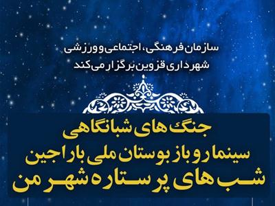 محمد درافشانی ،رئیس سازمان فرهنگی، اجتماعی و ورزشی شهرداری قزوین، از برگزاری جنگ های شبانگاهی شب های پرستاره شهر من در سینما تابستانه بوستان باراجین خبر داد.