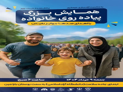 به مناسبت آزادسازی خرمشهر همایش بزرگ پیادهروی خانواده با اهدای صدها جایزه نفیس جمعه ۹ خردادبرگزار می شود.