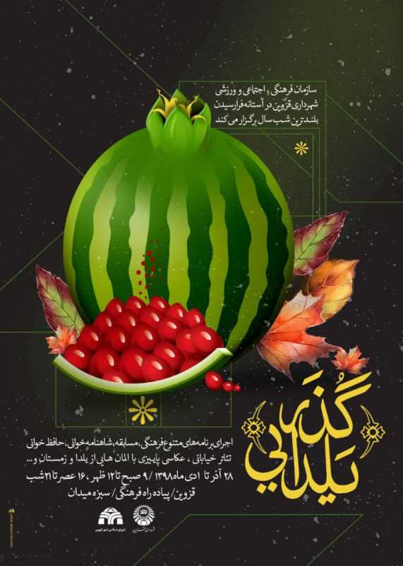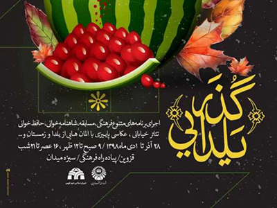بر اساس این گزارش؛ جشن های ویژه یلدا در فرهنگسرا ها و خانه های فرهنگ سازمان فرهنگی، اجتماعی و ورزشی شهرداری قزوین نیز برگزار می شود.