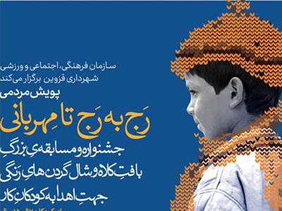 «پویش مردمی رج به به رج تا مهربانی» در قالب جشنواره و مسابقه بزرگ بافت کلاه و شال گردن های رنگی جهت اهدا به کودکان کار توسط سازمان فرهنگی، اجتماعی و ورزشی شهرداری قزوین برگزار می شود.