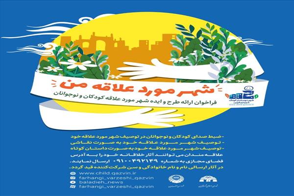 به مناسبت هفته ملی کودک؛ مسابقه ارائه طرح و ایده شهر مورد علاقه کودکان و نوجوانان با عنوان « شهر مورد علاقه من» برگزار می شود.