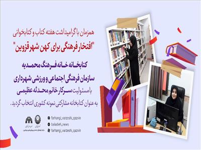 به گزارش روابط عمومی سازمان فرهنگی،اجتماعی و ورزشی شهرداری قزوین؛ کتابخانه خانه فرهنگ محمدیه سازمان فرهنگی، اجتماعی و ورزشی شهرداری قزوین به عنوان کتابخانه مشارکتی نمونه کشوری انتخاب شد.