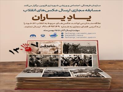 به مناسبت گرامیداشت چهل و دومین سالگرد پیروزی انقلاب اسلامی، مسابقه مجازی "یادِ یاران" توسط سازمان فرهنگی،اجتماعی و ورزشی شهرداری قزوین برگزار می شود.