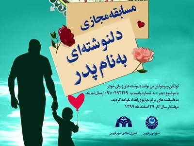 بنابر این گزارش،مهلت شرکت در مسابقه مجازی "دلنوشته ای به نام پدر" تا 29 اسفند ماه سال جاری است و به دلنوشته های برتر جوایزی اهداء خواهد شد.