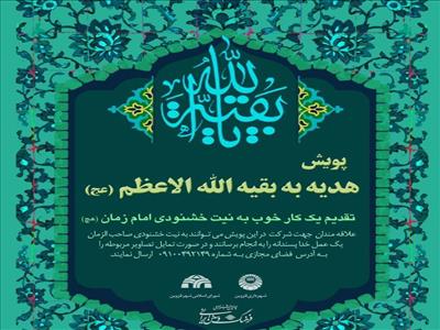 پویش "هدیه به بقیه الله الاعظم(عج)" تقدیم یک کار خوب به نیت خشنودی امام زمان(عج)، ویژه نیمه شعبان و چهارمین جشنواره ملی فرهنگ و سنن ایرانی برگزار می شود.