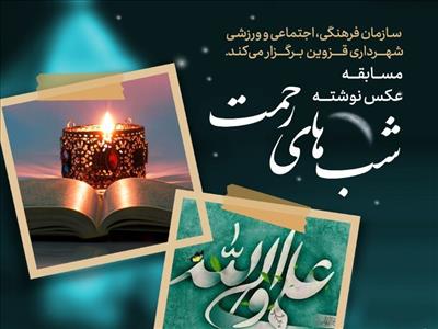مسابقه عکس نوشته "شب های رحمت" به مناسبت ماه مبارک رمضان توسط سازمان فرهنگی،اجتماعی و ورزشی شهرداری قزوین برگزار می شود.