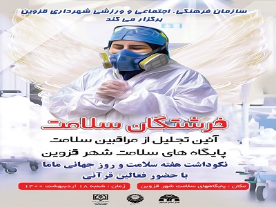 آئین تجلیل از مراقبین سلامت پایگاه های سلامت شهر قزوین با عنوان «فرشتگان سلامت» به مناسبت هفته سلامت و روز جهانی ماما برگزار می شود.