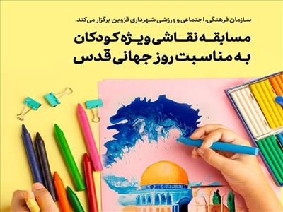 مسابقه نقاشی ویژه کودکان به مناست روز جهانی قدس توسط سازمان فرهنگی،اجتماعی و ورزشی شهرداری قزوین برگزار می شود.