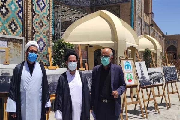 به گزارش روابط عمومی سازمان فرهنگی،اجتماعی و ورزشی شهرداری قزوین؛ نمایشگاه عکس « مراسم ارتحال معمار کبیر انقلاب اسلامی حضرت امام خمینی (ره)» در نماز جمعه شهر قزوین که 14 خرداد ماه سالجاری در حیاط مسجد النبی با رعایت فاصله گذاری اجتماعی و پروتکل های بهداشتی برپا شد،برگزار شد.
