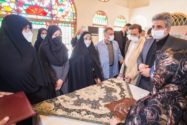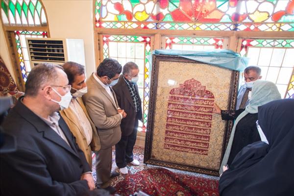 بنابراین گزارش؛در این مراسم از یک اثر فاخر سرمه دوزی آیت الکرسی اثر خانم حاتمی هنرمند قزوین رونمایی شد، برای دوختن این اثر هنری 10 کیلو و 800 گرم سرمه و مروارید بکار رفته و دوخت آن سه سال زمان برده است.