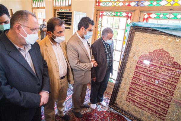 وی اضافه کرد:در این مراسم از اثر فاخر سرمه دوزی آیت الکرسی که در مدت سه سال توسط خانم حاتمی بافته شده است،رونمایی شد، در این اثر فاخر بیش از 10 کیلو و 800 گرم سرمه و مروارید بکار رفته است.
