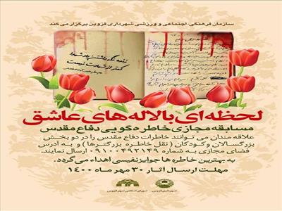 مسابقه مجازی خاطره گویی دفاع مقدس با عنوان «لحظه ای با لاله های عاشق» در قزوین برگزار می شود.