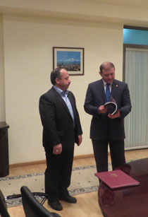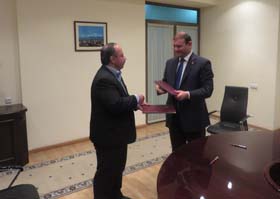 شهردار قزوين و هيات همراه با شهردار ايروان کشور ارمنستان با هدف همکاري متقابل و تبادل تجربيات در زمينهاي اقتصادي، گردشگري، فرهنگي، آموزشي، ورزشي، محيط زيست و... ديدار و گفتگو کردند.